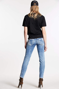 distressed-effect cropped jeans Highlights - Blue - Cotton blend - Light wash - Distressed effect - Belt loops - Logo patch to the rear - Concealed fly and button fastening - Classic five pockets - Cropped - Frayed hem Composition Outer: Cotton 99%, Spandex/Elastane 1% Lining: Polyester 65%, Cotton 35% SIZE & FIT Model measurements Height 5 ft 11 in(1.8 m) Bust/Chest 31.9 in(81 cm) Hips 36.2 in(92 cm) Waist 24 in(61 cm)