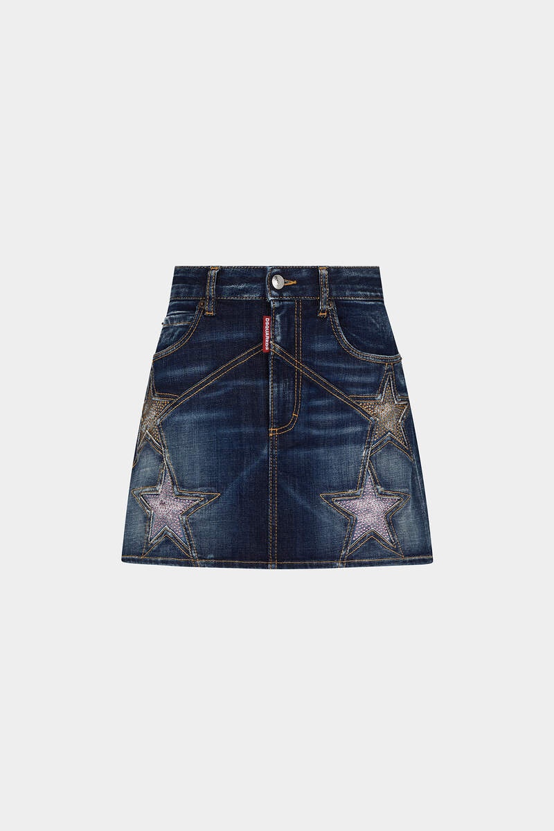 ● PRODUCT ID: S75MA0922S30664470 ● FIVE-POCKET MINI SKIRT IN STRETCH DENIM ● FINISH: USED WITH A WORN FINISH ● PATCHWORK-EFFECT SEAMS AND STITCHING ● STAR INSERTS WITH CRYSTAL APPLIQUÉS ● BUTTON WAISTBAND ● LOGO LABEL SEWN ON THE FLAP ● LEATHER LABEL SEWN ON THE BACK ● TWIN-NEEDLE STITCHING ● REGULAR FIT ● MADE IN ITALY ● FABRIC: 99% COTTON, 1% ELASTANE/SPANDEX This five-pocket denim miniskirt is truly special thanks to the "patchwork" effect with which it was created. The star inserts, embellished with crystal appliqués, add a touch of glamour that leads to matching garments designed for a special occasion. The fit invites you to choose fitted elements to highlight the shape of your bust. Jewelled accessories are a must.