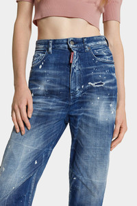 - MADE FROM STRETCH COTTON DENIM - MID BLUE WASH - RELAXED FIT - HIGH WAIST - FIVE-POCKET STYLE - DISTRESSED FINISH - SPLATTERED DETAILING - RED DSQUARED2 LABEL - DSQUARED2 PATCH PRIMARY FABRIC: 98% COTTON, 2% ELASTANE-SPANDEX; POCKET LINING: 65% POLYESTER, 35% COTTON Get the '80s look in these five-pocket jeans, flaunting a flattering mom fit that goes with everything. Distressing and splatters give them a cool lived-in look. Pair with sneakers or heels to suit the occasion.