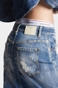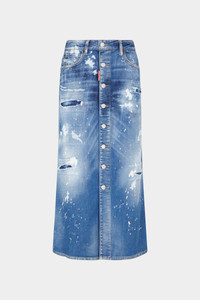 MEDIUM ICE SPOTS WASH DENIM LONG SKIRT