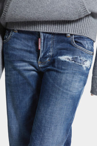 - PRODUCT ID : S75LB1096S30872470 - MADE FROM COTTON DENIM - MID BLUE WASH - STRAIGHT LEG - LOW RISE - FIVE-POCKET STYLE - DISTRESSED FINISH - WHISKERING EFFECTS - RED DSQUARED2 LABEL - DSQUARED2 PATCH PRIMARY FABRIC: 93% COTTON, 4% POLYESTER, 3% ELASTANE-SPANDEX; POCKET LINING: 65% POLYESTER, 35% COTTON; APPLICATION: 100% CALF LEATHER