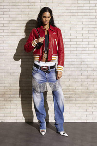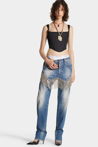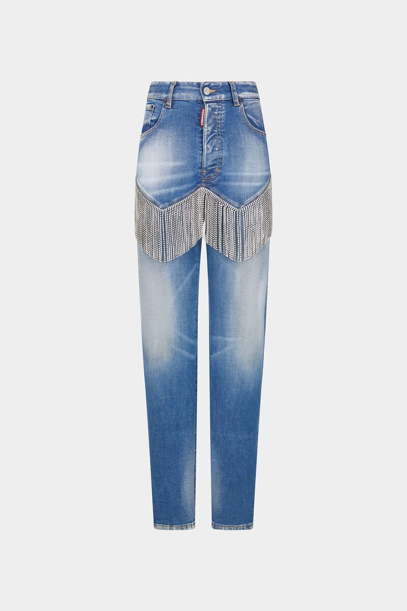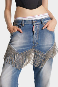 ● PRODUCT ID: S75LB0844S30789470 ● FIVE-POCKET STRETCH DENIM JEANS ● APPLIQUÉ CRYSTAL TASSELS ● FINISH: USED WITH A WORN FINISH ● BUTTON WAISTBAND ● LOGO LABEL SEWN ON THE FLAP ● LEATHER LABEL SEWN ON THE BACK ● CONTRASTING TWIN-NEEDLE STITCHING ● REGULAR FIT ● MADE IN ITALY ● FABRIC: 92% COTTON, 6% ELASTERELL, 2% ELASTANE/SPANDEX One detail is enough to revolutionise the image of a basic item such as five-pocket jeans. This Dsquared2 version offers a crystal fringe decoration that transforms the trousers into an object of desire to be worn on truly special occasions. Don't forget striking accessories such as jewel clutches and patent heeled sandals.