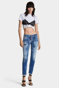 - MADE FROM STRETCH COTTON DENIM - MID BLUE WASH - SKINNY FIT - MID RISE - FIVE-POCKET STYLE - DISTRESSED FINISH - WHISKERING EFFECTS - RED DSQUARED2 LABEL - DSQUARED2 PATCH PRIMARY FABRIC: 98% COTTON, 2% ELASTANE-SPANDEX; PRIMARY FABRIC: 98% COTTON, 2% ELASTANE-SPANDEX; POCKET LINING: 65% POLYESTER, 35% COTTON Embrace the rugged look in these faded skinny jeans, featuring ripped detailing and frayed cuffs for that throw-on-and-go attitude: just add a plain white tee and fresh sneakers and you're good to go.