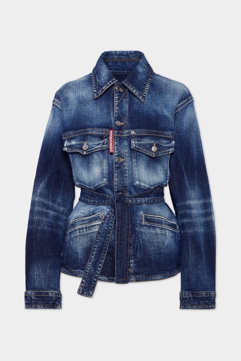 - MADE FROM STRETCH COTTON DENIM - DISTRESSED FINISH - OVERSIZED FIT - BUTTON CLOSURE - BUTTONED CUFFS - WAIST TIE - FLAP POCKETS - WELT POCKETS PRIMARY FABRIC: 99% COTTON, 1% ELASTANE-SPANDEX An oversized silhouette that cinches in at the waist for a feminine hourglass look: this jacket strikes the perfect balance of elegance and edge. Built from stretch denim with distressed detailing and our signature red label.