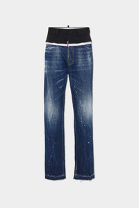 - PRODUCT ID: S75KB0420S30309470 - DENIM 5-POCKET PANTS - PURE WOOL ELEMENT - WASH: USED WITH WEAR-AND-TEAR - DOTTED ELEMENTS - CONCEALED SINGLE BUTTON WAISTBAND - LOGOED LABEL SEWN ON THE FLY - CONTRASTING TWO-NEEDLE STITCHING - FIT: LOOSE - MADE IN ITALY FABRIC 1: 100% COTTON FABRIC 2: 100% VIRGIN WOOL This Loose fit jean is characterized by the distinctive classic cut light wool waistband. This version with wear-and-tear and spots is recommended for grunge-flavored looks, and it's easy to pair with garments with distressed or vintage-looking details.