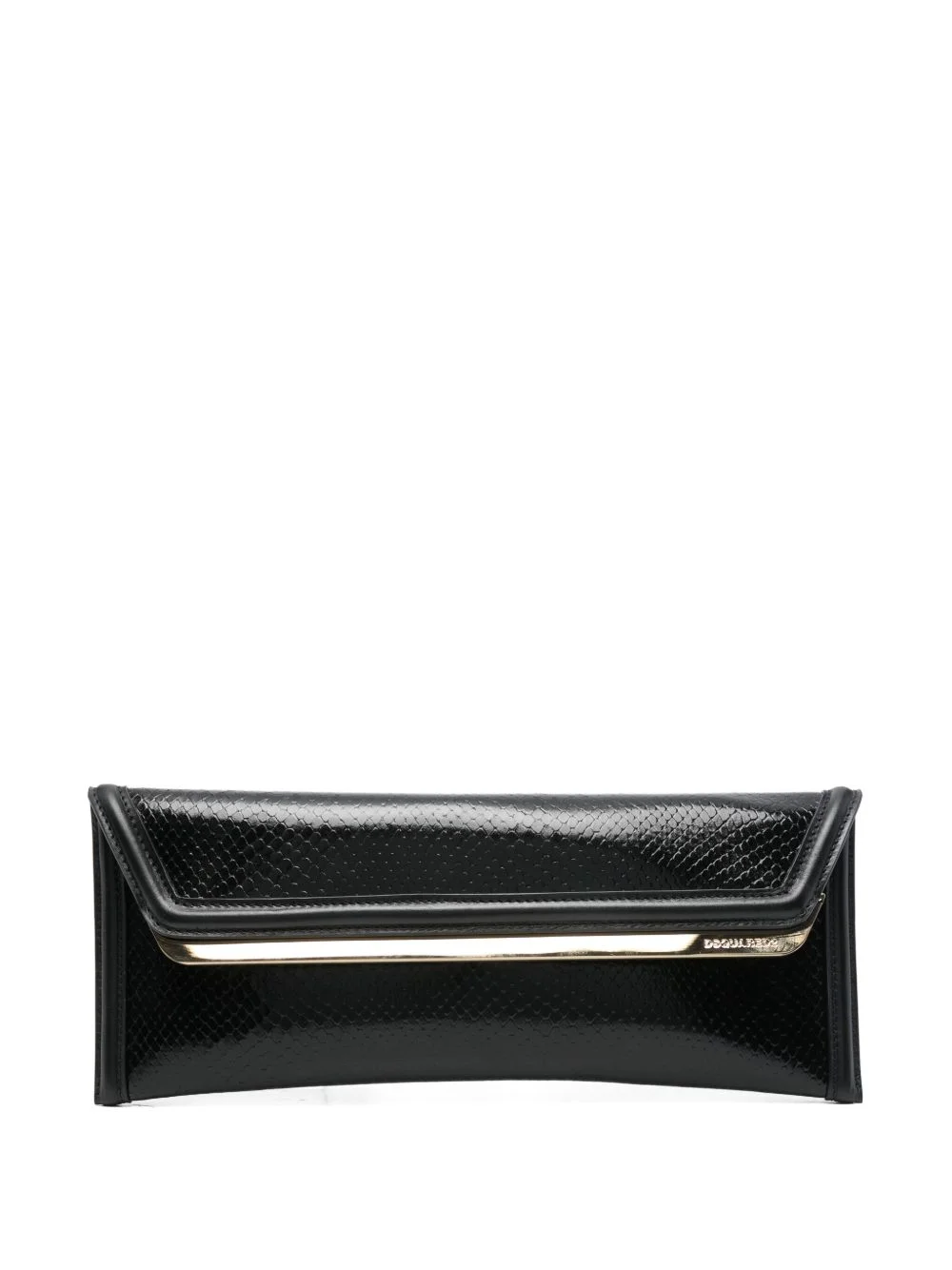 metallic-trim leather clutch bag Highlights - Black - Snakeskin effect - Metallic trim - Foldover top - Topstitch detailing - Rectangular shape Made in Italy Composition Outer: Calf Leather 100% Lining: Calf Leather 60%, Polyester 40% SIZE & FIT Model measurements Height 5 ft 11 in(1.8 m) Bust/Chest 32.28 in(82 cm) Hips 36.22 in(92 cm) Waist 25.19 in(64 cm)