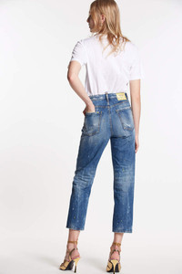 - PRODUCT ID: S75LB0804S30309470 - COTTON DENIM JEANS - STRAIGHT CROPPED FIT - HIGH WAIST - USED WASH WITH DESTROYED DETAILING AND COLOURED SPLATTERS - PATCH DETAILS - FIVE-POCKET STYLE - CONCEALED BUTTON FLY - LOGO TAG ON THE FLY - REAR LOOP - REAR "DSQUARED2” PATCH - MADE IN ROMANIA PRIMARY FABRIC: 100% COTTON. POCKET LINING: 65% POLYESTER, 35% COTTON