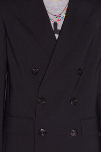 - PRODUCT ID: S75BN0825S54411900 - BLENDED STRETCH WOOL BLAZER - SLIM FIT - PEAK LAPELS - DOUBLE-BREASTED BUTTON CLOSURE - WELT CHEST POCKET - SIDE FLAP POCKETS - BUTTONED CUFFS - REAR VENTS - PRINTED LINING - DIMENSIONS: SHOULDERS: 40 CM, SLEEVES: 62.5 CM, LENGTH: 72 CM - MADE IN ITALY PRIMARY FABRIC: 54% POLYESTER, 44% VIRGIN WOOL, 2% ELASTANE-SPANDEX. LINING: 100% POLYESTER. SLEEVE LINING: 100% CUPRO THE MODEL IS 5'10' TALL AND WEARS A SIZE 2 RECALL THE DRAMATIC STYLES OF THE '80S WITH THE NEW YORKER DOUBLE BREASTED BLAZER. THIS SUIT JACKET BY DSQUARED2 IS AVAILABLE IN A VARIETY OF BOLD BLOCK COLOURS, SO YOU’RE GUARANTEED TO FIND THE PERFECT ONE (OR TWO!) FOR YOUR COLLECTION. WEAR WITH THE MATCHING TROUSERS FOR A PUT-TOGETHER LOOK OR ROCK WITH JEANS FOR A MORE LAIDBACK STYLE.