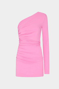 - PRODUCT ID: S72CV0260S22679242 - SHORT VISCOSE ONE-SHOULDER DRESS - SLIM FIT - LONG SLEEVES - MADE IN ITALY 100% VISCOSE-RAYON Stand out from the crowd in this gorgeous one shoulder dress. Worked in a pretty colour block fabric with shirred details. The slinky fit emphasises your silhouette for sultry summer styling. Pair with this season's PVC court shoes to finish the look.