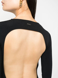 open-back fine-ribbed minidress Highlights - Black - Fine ribbed - Knitted construction - Logo plaque - Open back - Long sleeves - Thigh-length Made in Italy Composition Viscose 83%, Polyester 17% SIZE & FIT Model measurements Height 5 ft 10 in(1.78 m) Bust/Chest 30.7 in(78 cm) Hips 36.22 in(92 cm) Waist 25.59 in(65 cm) FittingInformation Designed for a close fit throughout Made from a midweight stretch fabric, this piece offers elasticity and flexibility when worn This piece fits true to size – take your usual size Washing instructions Dry Clean Only