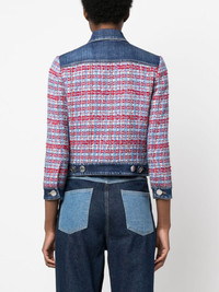 panelled denim jacket Highlights - Blue/multicolour - Cotton - Denim - Panelled design - Intarsia knit - Spread collar - Front button fastening - Four front flap pockets - Crop sleeves - Buttoned cuffs - Cropped - Straight hem Made in Italy Composition Outer: Cotton 63%, Polyester 16%, Acrylic 14%, other fibers 4%, Viscose 2%, Metallic Fibre 1% Lining: Cotton 100%, Polyester 100% SIZE & FIT Model measurements Height 5 ft 11 in(1.8 m) Bust/Chest 31.49 in(80 cm) Hips 36.61 in(93 cm) Waist 24.4 in(62 cm) FittingInformation Designed for a slim fit that sits just away from the body offering a close yet comfortable fit The adjustable tabs allow for fitted preferences Made from a midweight non-stretch fabric This piece fits true to size – take your usual size Washing instructions Hand Wash