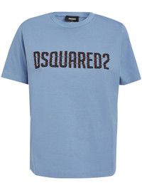 logo-print T-shirt Highlights - Powder blue - Cotton - Logo print to the front - Round neck - Short sleeves - Straight hem Made in Italy Composition Cotton 100% SIZE & FIT FittingInformation Designed for a relaxed fit, this piece allows for comfort and movement when worn Made from a midweight non-stretch fabric, this piece offers minimal elasticity when worn