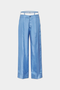 - MADE FROM SILK TWILL - SLOUCHY FIT - THIN BUCKLED STRAP WAIST - BACK HANDKERCHIEF DETAIL PRIMARY FABRIC: 100% SILK Rock the androgynous look in these silk twill trousers, glamming up a slouchy tailored fit with a strappy waist and handkerchief back. Pair with heels and a crop top for a statement evening look.