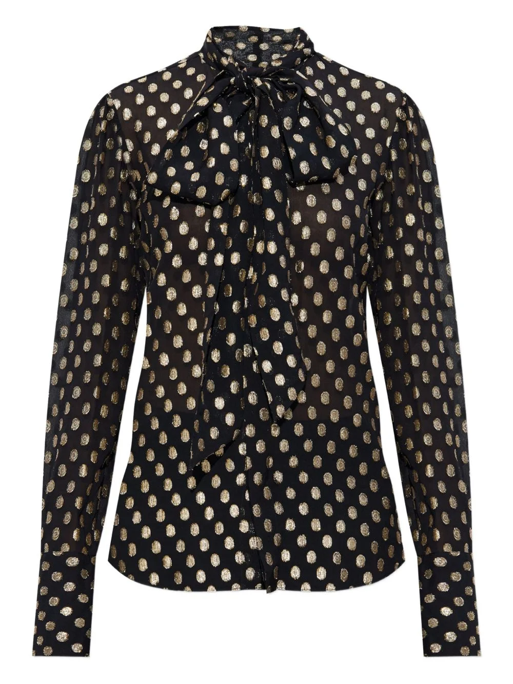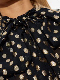 polka-dot tie shirt Highlights - Black - Polka-dot pattern - Tie detail - Long sleeves - Buttoned cuffs - Button fastening Made in Italy Composition Viscose 80%, Polyester 20% Washing instructions Read Manufacturer Guidelines