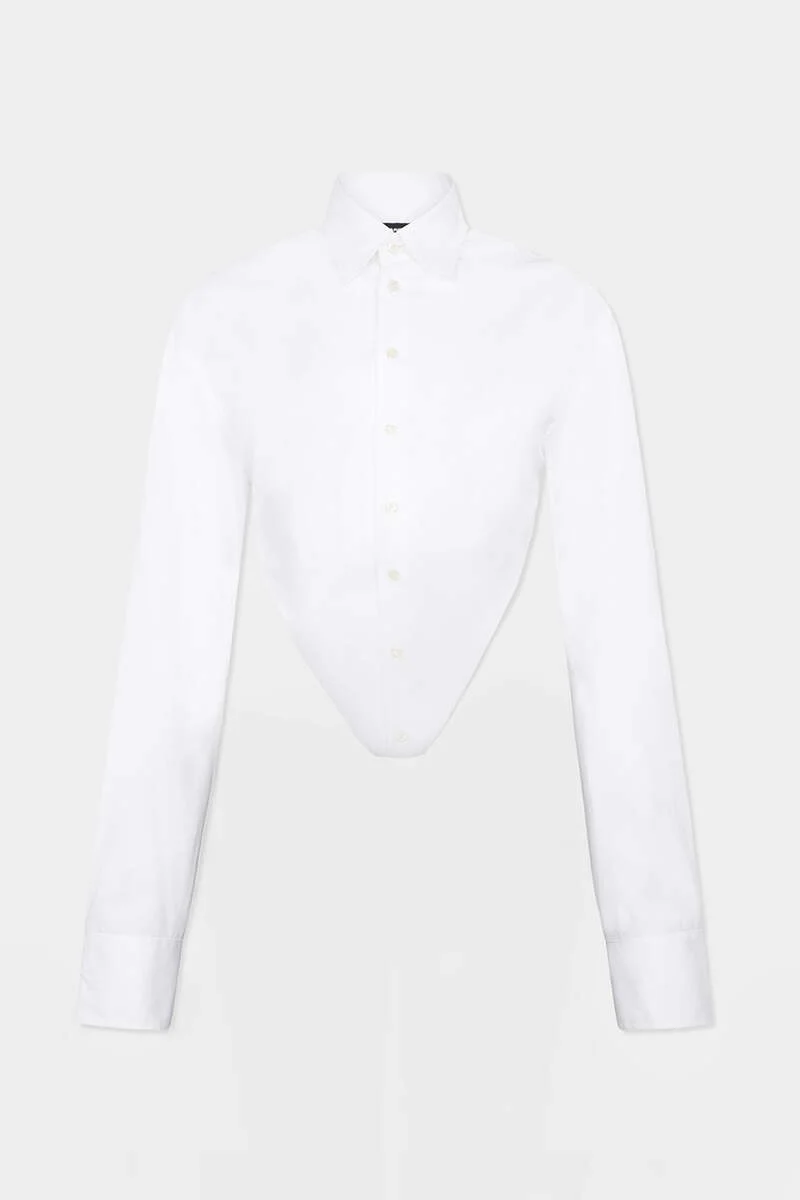 - PRODUCT ID : S72DL0779S44131100 - MADE FROM STRETCH COTTON POPLIN - CLASSIC COLLAR - BUTTON CLOSURE - LONG SLEEVES - CUT-OUT PRIMARY FABRIC: 96% COTTON, 4% ELASTANE-SPANDEX The button-up shirt, with a twist. The Deep Cut shirt features buttons that give way to a fabric loop designed for styling freedom. Style it with a chunky belt and skirt for a look that speaks attitude.