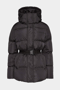 - PRODUCT ID: S75AA0423S53817900 - NYLON HOODED DOWN JACKET - CONCEALED ZIP FASTENER - CLASP FASTENING TIE BELT - TWO SLIT POCKETS - INNER LINING - FIT: REGULAR - MADE IN ITALY FABRIC: 100% POLYAMIDE PADDING: 90% DUCK DOWN, 10% DUCK FEATHER LINING: 100% POLYAMIDE This nylon down jacket ensures protection yet not forgets to give that feminine touch through a tie belt. The perfect garment not only for everyday wear, but also for friends nights out.