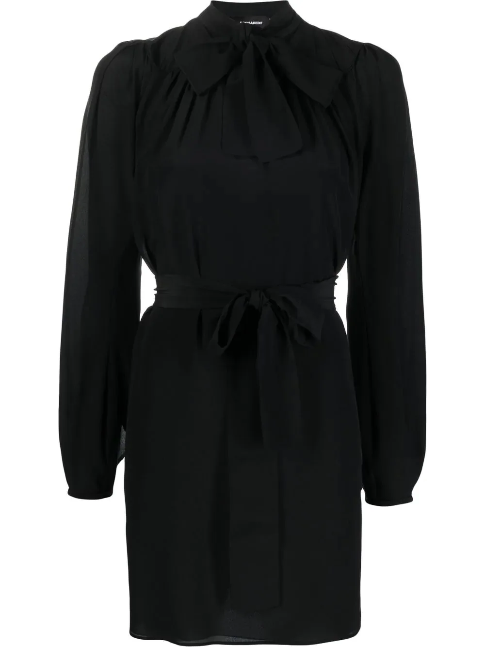pussy-bow silk mini dress jet black silk blend pussy-bow fastening long sleeves tied waist short front button fastening straight hem Made in Italy Composition Lining: Polyester 100% Outer: Silk 100% SIZE & FIT Model measurements Height 5 ft 10 in(1.78 m) Bust/Chest 30.31 in(77 cm) Hips 36.61 in(93 cm) Waist 24.8 in(63 cm) FittingInformation This piece fits true to size. We recommend you get your regular size Cut for a loose fit. Comes with an adjustable belt for a flexible fit at the waist Made with a mid-weight non-stretch fabric Washing instructions Dry Clean Only