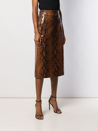 snakeskin effect skirt From their Milan studio, Dsquared2 serve up a sporty mix of dynamic fashion, tailored with a luxury finish, an unforgettable aesthetic elevating wardrobes around the globe, as seen with this brown goat skin snakeskin effect skirt. Featuring a mid-length, side slit pockets, a cinched waist and a back zip fastening. Imported Composition Lining: Cotton 100%, Viscose 65%, Polyester 35% Outer: Goat Skin 100% SIZE & FIT Model measurements Height 5 ft 11 in(1.8 m) Bust/Chest 31.49 in(80 cm) Hips 35.82 in(91 cm) Waist 24.8 in(63 cm) FittingInformation This piece fits true to size. We recommend you get your regular size Designed to be fitted at the waist and hips, loose over the leg Made with a mid-weight non-stretch fabric Washing instructions Specialist Cleaning