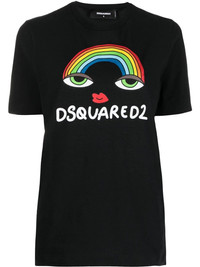 rainbow logo cotton T-shirt Dsquared2 incorporates vibrant patterns into its SS22 collection as this tee demonstrates. It arrives in cotton, printed with a colourful rainbow face on the chest. Made in Italy Composition Cotton 100% SIZE & FIT Model measurements Height 5 ft 10 in(1.78 m) Bust/Chest 32.28 in(82 cm) Hips 35.03 in(89 cm) Waist 23.22 in(59 cm) FittingInformation This piece fits true to size. We recommend you get your regular size Cut for a relaxed fit Made with a mid-weight fabric Washing instructions Machine Wash