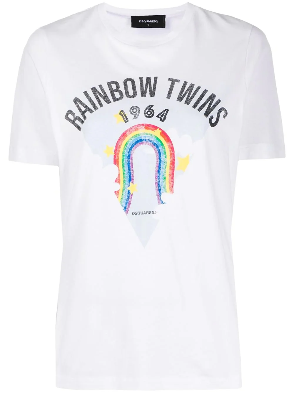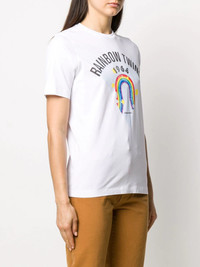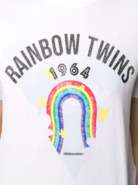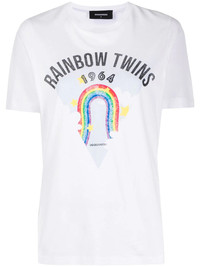 rainbow print T-shirt After the storm comes the rainbow! Crafted from pure cotton, this rainbow print T-shirt from DSQUARED2 is here to turn your day into something better. Say yes to happy days! Featuring a round neck, short sleeves, a straight hem and a rainbow print to the front. Imported Composition Cotton 100% SIZE & FIT Model measurements Height 5 ft 11 in(1.8 m) Bust/Chest 33.07 in(84 cm) Hips 37.4 in(95 cm) Waist 25.19 in(64 cm) FittingInformation This piece fits true to size. We recommend you get your regular size Cut for a relaxed fit Made with a mid-weight fabric Washing instructions Hand Wash