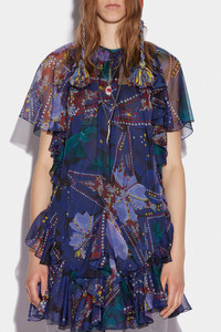 - PRODUCT ID: S72CV0338S76473001S - CHIFFON DRESS WITH FLORAL PRINT AND RUFFLES - SLIM FIT - REAR HIDDEN ZIP CLOSURE - MATCHING SLIP - MADE IN ITALY PRIMARY FABRIC: 100% POLYESTER. INSIDE: 100% POLYESTER THE MODEL IS 5'10' TALL AND WEARS A SIZE 2 THE RETRO BLOSSOM DRESS IS THE PERFECT ITEM FOR ADDING SOME VIBRANCY TO YOUR WARDROBE. THIS MULTICOLOURED DRESS BY DSQUARED2 FEATURES A VARIETY OF CONTRASTING PATTERNS FOR DELIBERATELY BUSY FEEL THAT IS SURE TO DRAW THE EYE. PAIR WITH A SLOUCHY, BLOCK-COLOUR CARDIGAN IN A CONTRASTING TONE TO REALLY COMPLETE THE LOOK.