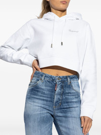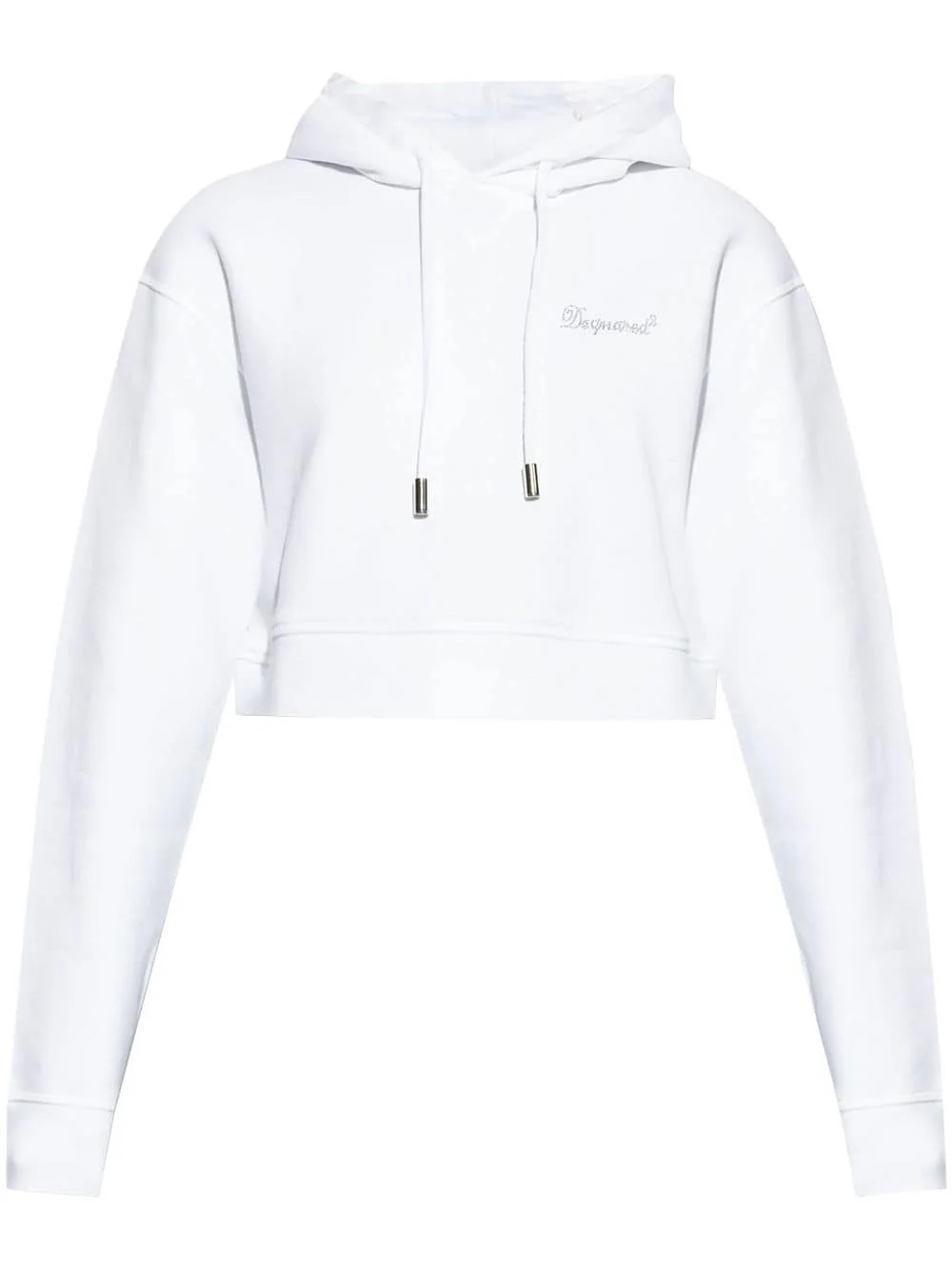 rhinestone-logo cropped hoodie Highlights - White - Cotton - Drawstring hood - Drop shoulder - Long sleeves - Rhinestone-logo at the chest - Cropped - Straight hem Made in Italy Composition Cotton 100%