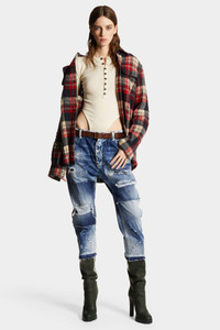 - PRODUCT ID: S75LB0982S30309470 - DENIM 5-POCKET PANTS WITH RIPS AND MENDINGS - WASH: RIPPED - SINGLE BUTTON WAISTBAND - LOGOED LABEL SEWN ON THE FLY - LEATHER LABEL SEWN ON THE BACK - CONTRASTING TWO-NEEDLE STITCHING - FIT: LOOSE - MADE IN ITALY FABRIC: 100% COTTON APPLICATION 100% CALF LEATHER Patchwork is the defining element of these loose-fit five-pocket jeans. Extreme wash and ripped wear-and-tear suggest looks with a grunge or vintage flavour.