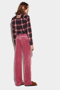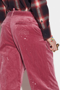 - PRODUCT ID: S74KB0702S39021111 - COTTON VELVET TROUSERS - BOOTCUT FIT - DESTROYED DETAILING WITH COLOURED STAINS - SIDE POCKETS - REAR WELT POCKETS - REAR LOOP - TONE-ON-TONE EMBROIDERED LETTERING ON THE BACK - CONCEALED BUTTON FLY - DIMENSIONS: CROTCH 26.5 CM, LEG OPENING 25 CM, LENGTH 106.5 CM - MADE IN ITALY PRIMARY FABRIC: 96% COTTON, 4% METALLIC FIBRE. POCKET LINING: 100% COTTON. HALF-LINING: 100% COTTON MAKE A STATEMENT WITH THESE STRIKING VELVET OVERLONG TROUSERS. FEATURING DSQUARED2'S STITCHED LOGO ON THE BACK POCKET, PAIR IT WITH ANY SLIM-FIT T-SHIRT FOR THAT MAVERICK CAREFREE CHIC VIBE.