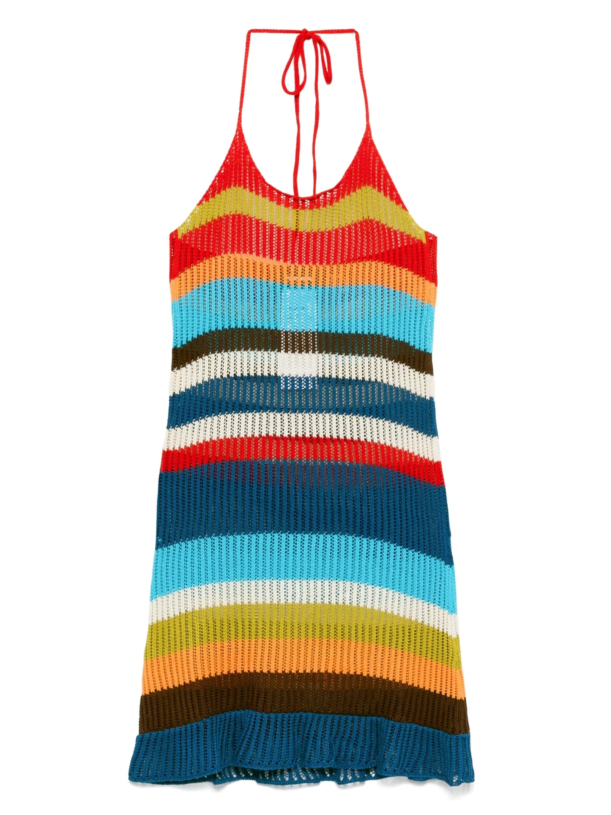 rose red halterneck tie fastening horizontal stripe pattern open back - Color: RED - Made in: Italy - Designer Style ID: D13131 S73CU0317 961 Composition and care Cotton: 100.0%