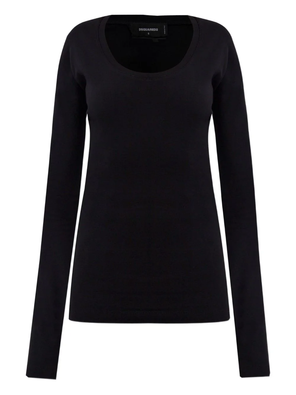 round-neck long-sleeve top Highlights - Black - Round neck - Long sleeves - Ribbed texture - Straight hem Made in Italy Composition Cotton 100% Washing instructions Read Manufacturer Guidelines