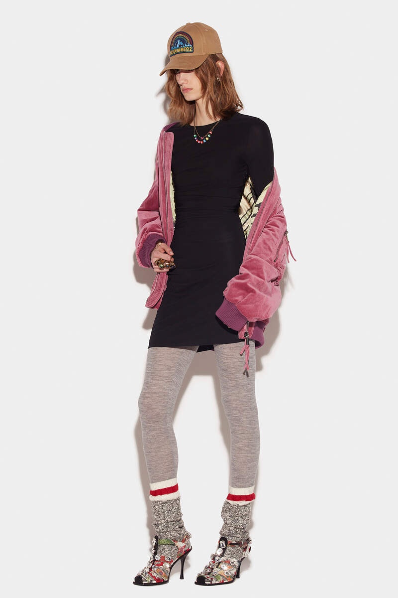 - PRODUCT ID: S75CV0586S24383900 - SHORT VISCOSE JERSEY DRESS - SLIM FIT - DRAPED DETAIL - CREW NECK - HIDDEN SIDE ZIP CLOSURE - LONG SLEEVES - MADE IN ITALY 100% VISCOSE-RAYON The model is 5'10' tall and wears a size 2 If you’re searching for the perfect style statement, look no further than the Ruched Long Sleeve Mini Dress. This DSQUARED2 look features a gathered design that follows the curves of your body – ideal for the party season. Pair with chunky boots and socks for a more casual look, or dress it up with a pair of heels and something sparkly.