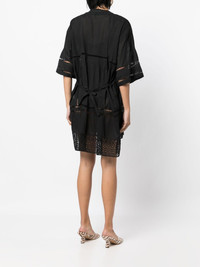 Sangallo cotton tunic dress black cotton embroidered detailing at the hem round neck half-length sleeves shift style rear tie fastening Imported Composition Cotton 100% SIZE & FIT Model measurements Height 5 ft 10 in(1.77 m) Bust/Chest 31.49 in(80 cm) Hips 35.43 in(90 cm) Waist 25.19 in(64 cm) FittingInformation This piece fits true to size. We recommend you get your regular size Cut for a loose fit Made with a mid-weight non-stretch fabric Washing instructions Machine Wash