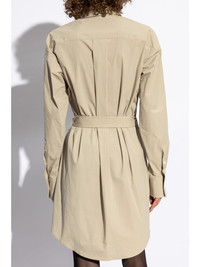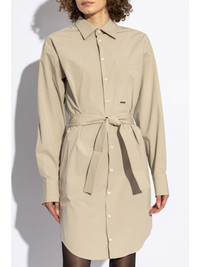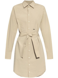 shirt midi dress Highlights - Beige - Front button fastening - Tied waist - Buttoned cuffs - Chest patch pocket Made in Italy Composition Cotton 97%, Elastane 3%
