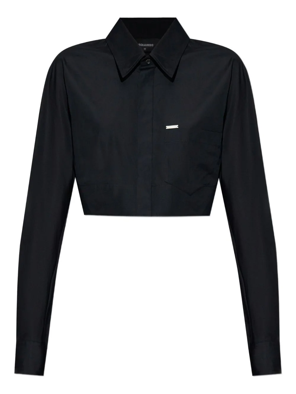 cropped shirt Highlights - Black - Concealed front button fastening - Chest patch pocket - Silver-tone logo plaque - Long sleeves Made in Italy Composition Cotton 100%