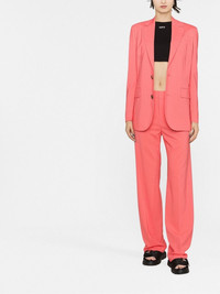 single-breasted suit Dsquared2 showcases a classic tailored style with this suit. Designed in pink, this piece boasts timeless elements, such as the notched lapels and pressed crease. Made in Italy Composition Outer: Polyester 54%, Virgin Wool 44%, Spandex/Elastane 2% Lining: Polyester 100% SIZE & FIT Model measurements Height 5 ft 10 in(1.77 m) Bust/Chest 31.49 in(80 cm) Hips 35.03 in(89 cm) Waist 23.22 in(59 cm) FittingInformation Designed as separates, with a loose fit over the torso whilst the trousers offer a straight-leg cut allowing an unrestricted and comfortable fit over the leg Made from a midweight stretch fabric, this piece offers elasticity and flexibility when worn This piece fits true to size – take your usual size