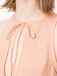 sleeveless silk blouse Nude pink sleeveless silk blouse from DSQUARED2 featuring a lightweight construction, a sheer construction, a tied neckline, a sleeveless design and a curved hemline. Made in Italy Composition Silk 100% SIZE & FIT Model measurements Height 5 ft 9 in(1.75 m) Bust/Chest 33.07 in(84 cm) Hips 35.03 in(89 cm) Waist 24.01 in(61 cm) FittingInformation This piece fits true to size. We recommend you get your regular size Cut for a loose fit Made with a lightweight fabric