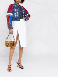 slit-detail high-waisted skirt Sleek and modern, this Dsquared2 skirt is everything that you've been looking for. A contemporary slit detail adds an unexpected touch here. Add it to your wardrobe and step out in style. Made in Italy Composition Cotton 100% SIZE & FIT Model measurements Height 5 ft 10 in(1.77 m) Bust/Chest 31.49 in(80 cm) Hips 36.22 in(92 cm) Waist 22.44 in(57 cm) FittingInformation This piece fits true to size. We recommend you get your regular size Cut for a slim fit Made with a mid-weight non-stretch fabric Washing instructions Machine Wash
