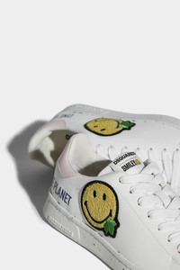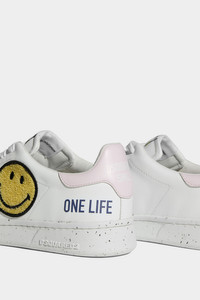 - PRODUCT ID: SNW013505705356M2477 - SNEAKERS IN LEATHER - FASTENING WITH LACES - "ONE LIFE ONE PLANET" PRINTED LETTERING ON THE SIDES - “DSQUARED2 SMILEY" LETTERING ON THE HEEL - EMBROIDERED JOY PATCH ON THE SIDE - LOGO LABEL ON THE TONGUE - "DSQUARED2" LETTERING EMBOSSED ON THE HEEL - MADE IN ITALY UPPER: 50% RECYCLED LEATHER, 20% RECYCLED POLYESTER, 15% POLYESTER, 15% OTHER FIBRES. LINING: 60% LEATHER, 35% BAMBOO VISCOSE, 5% POLYESTER. SOLE: 70% RECYCLED RUBBER, 30% ELASTODIENE. IF YOU'RE A FAN OF ELEVATED ESSENTIALS, YOU NEED THESE SNEAKERS IN YOUR COLLECTION. FEATURING AN ABUNDANCE OF STAND-OUT DETAILS, THESE KICKS ARE SURE TO TURN HEADS WHEREVER YOU GO. THE SMILEY SIDE PATCH WITH A FLUFFY TEXTURE GIVES OFF A CARE-FREE VIBE, WHILE THE BOLD 'ONE LIFE' AND 'ONE PLANET' PRINTS ON THE SIDE ADD PURPOSE TO YOUR STYLE. PLUS, THE 'DSQUARED2 SMILEY' LABEL ON THE TONGUE AND SPECKLED SOLE ADD A LUXURIOUS TOUCH TO YOUR LOOK. FINISHED WITH A CONTRASTING HEEL TAB WITH DSQUARED2 PRINT.