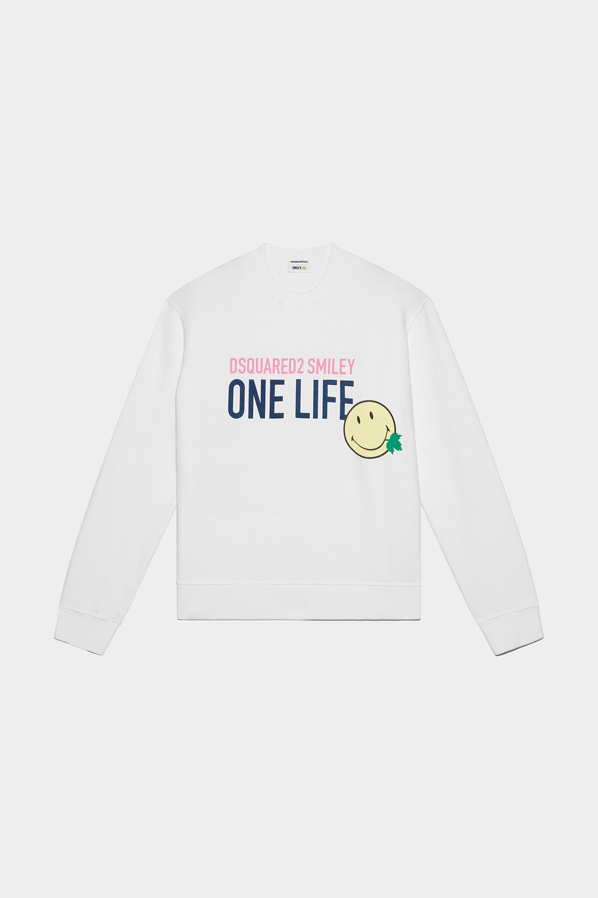 - PRODUCT ID: S73GU0082S25535100 - SWEATSHIRT IN UNBRUSHED RECYCLED ORGANIC COTTON - CREW NECK - RIBBED HEMS - "DSQUARED2 SMILEY ONE LIFE" FRONT PRINT - "ONE PLANET” PRINT ON THE BACK - MADE IN ITALY MAIN FABRIC: 100% COTTON. SECONDARY FABRIC: 94% COTTON, 6% ELASTANE. THE MODEL IS 5'10' TALL AND WEARS A SIZE S THIS COOL SWEATSHIRT MADE FROM 100% RECYCLED ORGANIC UNBRUSHED COTTON FLEECE IS THE EMBODIMENT OF SUSTAINABLE STYLE. FEATURES A CREW NECK AND V-INSERT AND RIBBED TRIMS. ITS UNIQUE DESIGN INCLUDES A "DSQUARED2 SMILEY ONE LIFE" PRINT ON THE FRONT AND A "ONE PLANET" PRINT ON THE BACK.