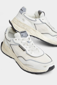 - MADE FROM LEATHER AND MESH - VINTAGE FINISH - LACE-UP CLOSURE - RUBBER RUNNING SOLE - DSQUARED2 LABEL ON THE TONGUE - RED DSQUARED2 LABEL UPPER: 15% PU, 40% CALFSKIN, 45% POLYESTER; LINING: 60% COTTON, 10% POLYESTER, 30% CALFSKIN; SOLE: 100% THERMOPLASTIC RUBBER Retro running style is on the cards with this low-top mesh and leather sneaker, hand-finished with a dirty treatment for a worn-in look. Embellished with our signature maple leaf detail along the outsole for exclusive Dsquared2 attitude.