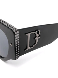 square-frame sunglasses jet-black square frame grey tinted lenses silver-tone hardware These glasses come with a protective case. Made in Italy Composition Acetate 100% SIZE & FIT Measurement Arm Length 5.7 in(14.5 cm) Bridge Width 0.7 in(1.8 cm) Lens Diameter 2.12 in(5.4 cm) Total Width 5.78 in(14.7 cm)