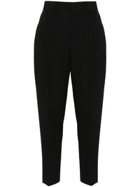 straight cropped trousers Highlights - Black - Virgin wool - Grain de poudre - Belt loops - Pressed crease - Two diagonal pockets to the sides - Two rear button-fastening jetted pockets - Silver-tone logo plaque - Side slit - Straight leg - Cropped leg - Concealed front button, hook and zip fastening Made in Italy Composition Lining: Polyester 100% Outer: Virgin Wool 100% SIZE & FIT Model measurements Height 5 ft 9 in(1.76 m) Bust/Chest 32.28 in(82 cm) Hips 35.03 in(89 cm) Waist 24.8 in(63 cm) FittingInformation Designed for a tapered fit, these trousers allow for a close fit at the waist and a loose unrestricted fit over the leg with a closer fit towards the ankle Made from a midweight non-stretch fabric This piece fits true to size – take your usual size