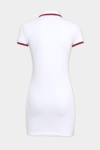● PRODUCT ID: S72CV0532S22743100 ● SHORT-SLEEVED COTTON PIQUET POLO SHIRT DRESS ● THREE-BUTTON COLLAR ● LOGO EMBROIDERED ON THE CHEST ● RIBBED COLLAR AND CUFFS WITH CONTRASTING STRIPES ● SLIM FIT ● MADE IN ITALY ● FABRIC: 100% COTTON Tennis matches seem to have inspired this cotton polo dress which makes its proportions its strong point. Small details such as contrasting stripes and matching embroidery underline the concept of elegance. It is advisable to mix the colours well when choosing accessories. The suggestion is to add lively but tone-on-tone elements.