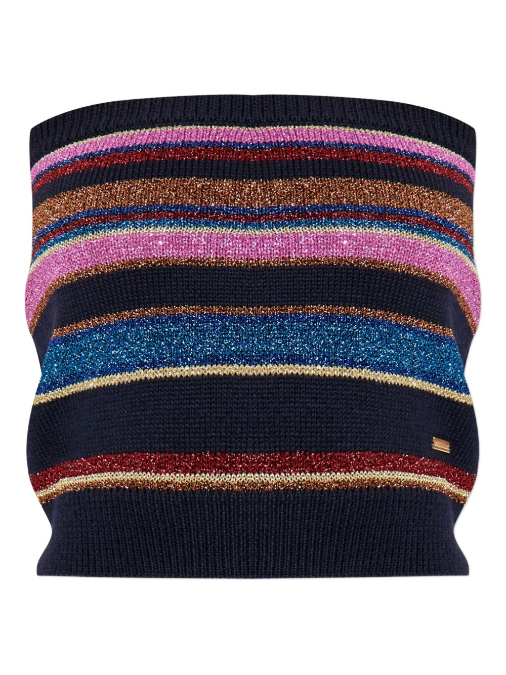 striped knit set Highlights - Navy blue - Wool - Tube top - Drawstring shorts - Logo plaque Made in Italy Composition Wool 51%, Metallised Fibres 24%, Polyamide 19%, Viscose 6% Washing instructions Read Manufacturer Guidelines
