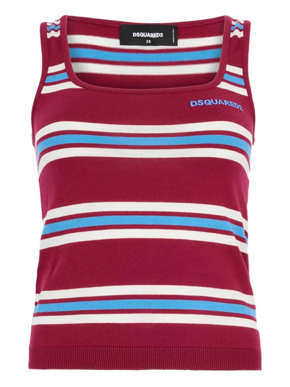 striped knit tank top Highlights - Purple - Horizontal stripe pattern - Square neck - Lettering detail - Knit construction - Sleeveless Made in Italy Composition Cotton 100% Washing instructions Read Manufacturer Guidelines