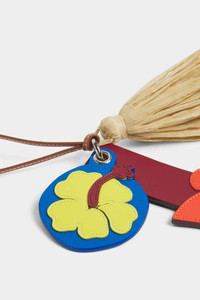 - PRODUCT ID : SGW001239208395M037UN - RAFFIA TASSEL - LEATHER PENDANTS - LEATHER STRAP 43% POLYURETHANE, 16% POLYESTER, 10% COTTON, 31% VISCOSE. ACCESSORY: 100% BRASS Summer-chic has never been easier: bring a personal touch to your beach bag, crossbody or pouch with this raffia tassel charm. Complete with two leather pendants.
