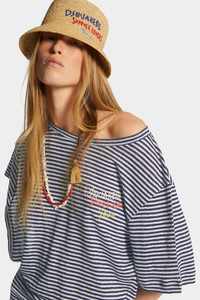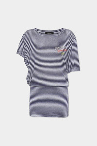 - PRODUCT ID : S73CU0314S23601001F - MADE FROM LINEN JERSEY - MICRO-STRIPED DESIGN - ASYMMETRICAL SLEEVES - FITTED SKIRT - EMBROIDERED "SUMMER LOVERS" LETTERING 100% LINEN Breezy elegance is on the cards with this sailor-stripe mini dress, draping over the body in linen jersey. Featuring asymmetrical sleeves for that effortless throw-on-and-go look, it's embroidered with "DSQUARED2 SUMMER LOVERS XOXO" lettering on the chest.