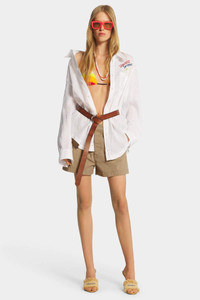 - PRODUCT ID : S73MU0238S78499123 - MADE FROM STRETCH COTTON TWILL - HIGH WAISTED WITH BELT LOOPS - CONCEALED CLOSURE - BACK WELT POCKETS PRIMARY FABRIC: 98% COTTON 2% ELASTANE-SPANDEX. POCKET LINING: 100% COTTON From city strolls to sundowners by the beach, these high-waisted shorts are ready for it all. Made from cotton twill with a hint of stretch, their A-line silhouette is sleek and stylish without compromising on comfort. Embellished with a subtle metal logo plaque.