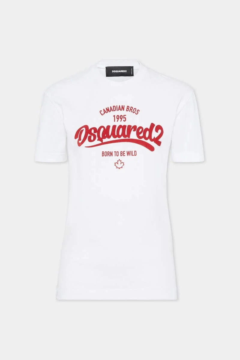 - PRODUCT ID : S75GD0488D20035100 - MADE FROM COTTON JERSEY - REGULAR FIT - CREW NECK - FLOCKED DSQUARED2 "BORN TO BE WILD" PRINT