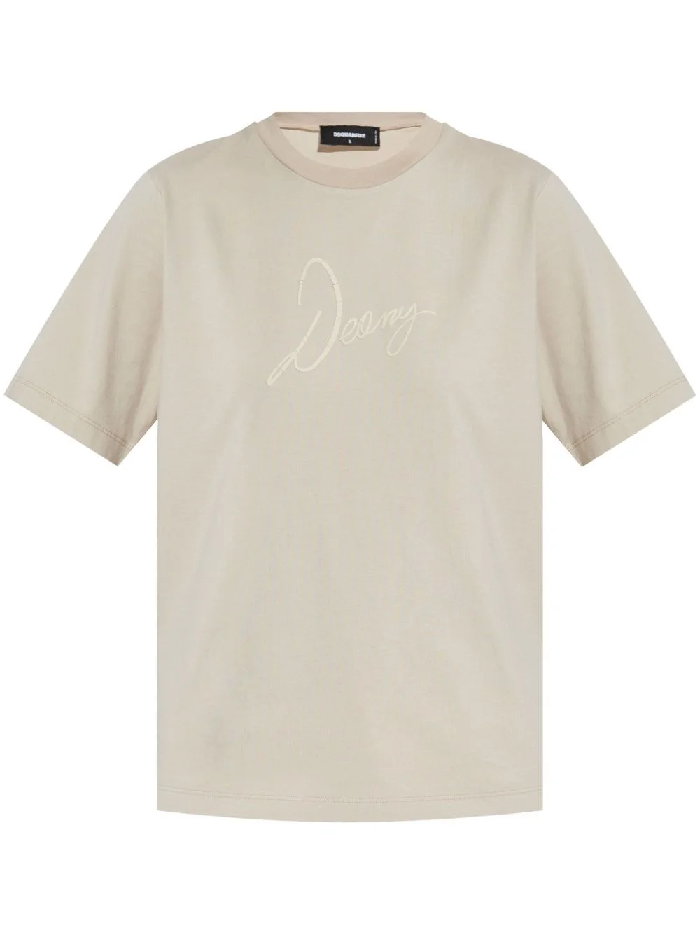 text-print T-shirt Highlights - Sand beige - Round neck - Short sleeves - Straight hem Made in Italy Composition Cotton 100%
